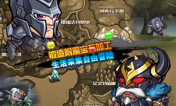 纯手绘精美角色设计,超千张特色冒险地图,寂静幽深的寒霜湖、积雪覆盖的丹夏尔、干燥狂野的贫瘠之地,汇集日韩顶级画师打造2015最华丽魔幻Q版手游