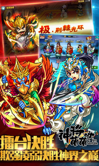 2015最乱斗手游《神将萌萌哒》突破传统束缚限制,带你领略三国与封神人物之间的炫酷战斗!全新感受弹指间敌人灰飞烟灭、畅快斩杀的爽快体验。 “神将萌萌哒”设定在一个奇异错乱时空之中,玩家在曲折离奇的故事情节中,被引导着建立抗争魔兵的据点,攻城略地展开与上古圣魔的正邪大战,并且一步步揭开时空错乱之谜。