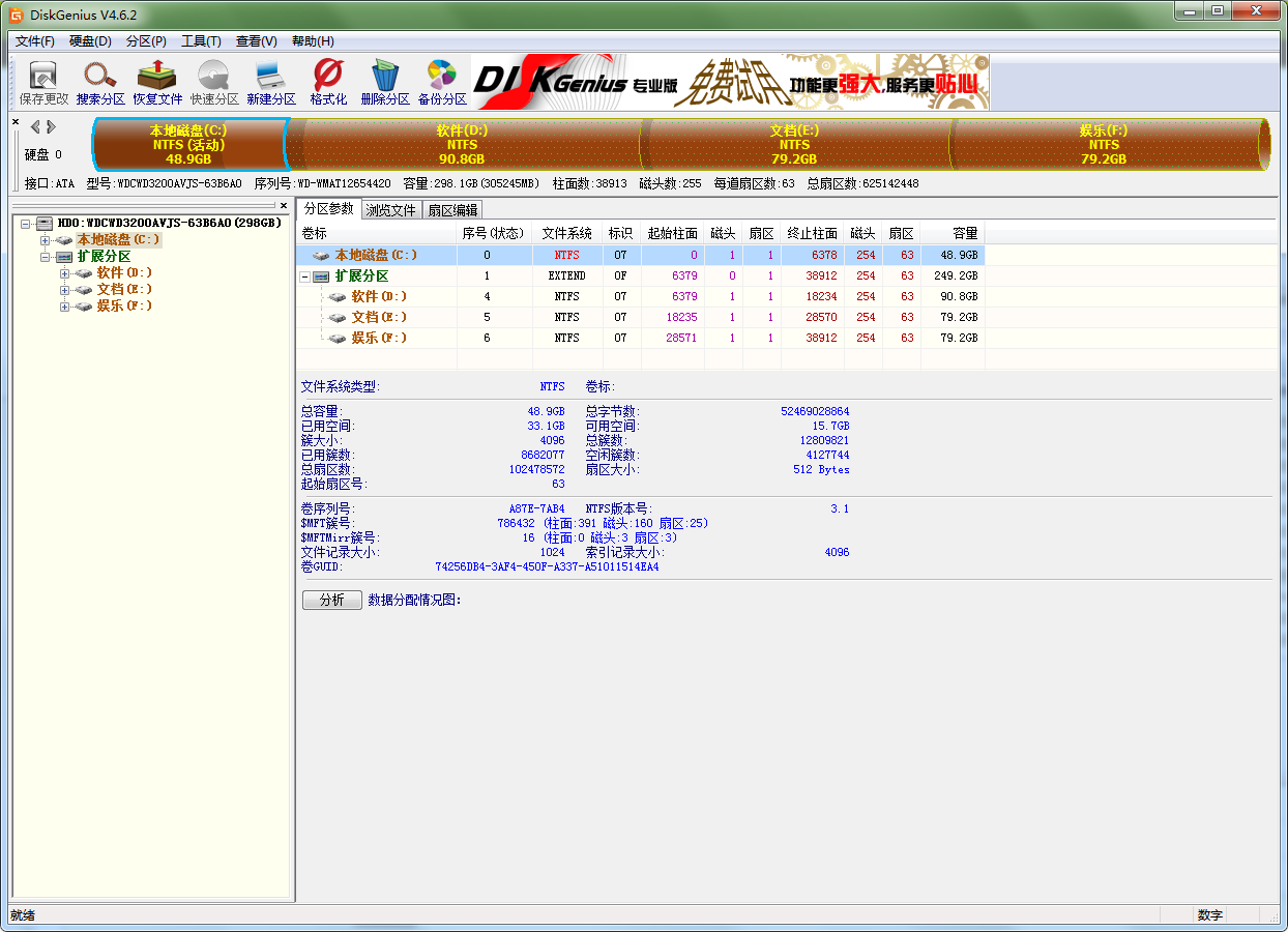 DiskGenius是一款硬盘分区及数据恢复软件,是在最初的DOS版的基础上开发而成的。Windows版本的DiskGenius软件,除了继承并增强了DOS版的大部分功能外,还增加了许多新的功能,例如:分区备份、已删除文件恢复、分区复制、硬盘复制等功能,此外还增加了对VMWare虚拟硬盘的支持。