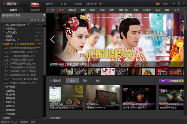 国内各大视频网站热门影视资源任你选播。观看搜狐视频享受去掉60秒前插广告服务。完美播放本地音视频文件。