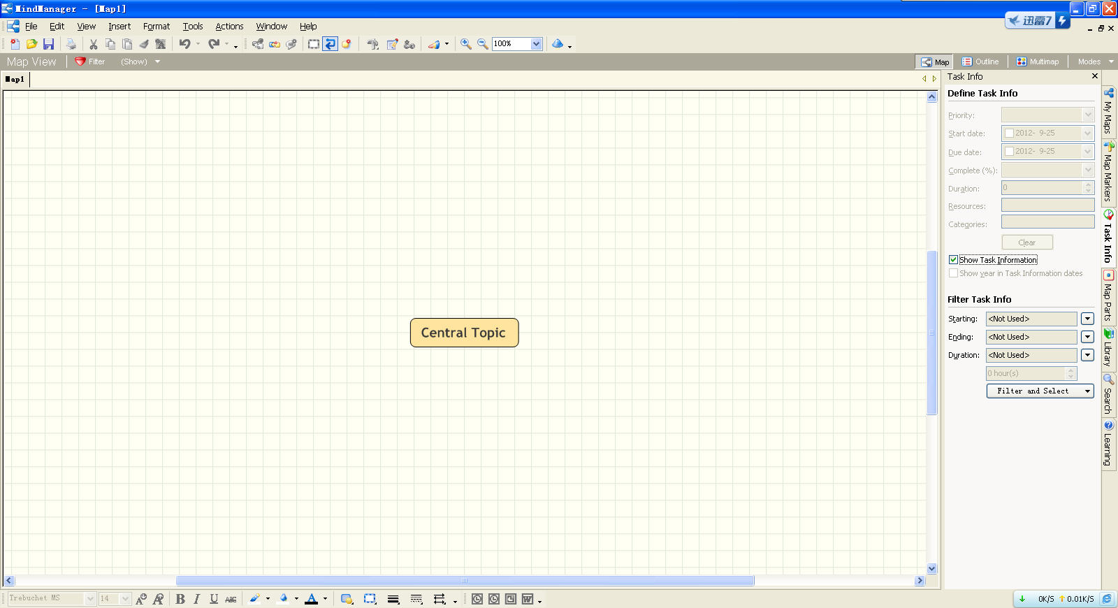 MindManager X5是一个可视化的工具,可以用在脑力风暴(brainstorm)和计划(plan)当中。提供给商务人士一个更有效的、电子化的手段来进行捕捉、组织和联系信息(information)和想法(idea)。 作为便笺(note-pads),挂图(flipcharts)和白板(white boards)的数字化替代品,MindManager提供更快的理解、更好的判断和减少会议时间来提高工作效率。并且MindManager可以和微软的Office系列做到无缝的连接。基于XML的MindManager可以将微软的Office系列同企业数据进行无缝的连接,并能有效的利用好企业的知识。 MindManager X5 Pro能最大限度的帮助商务人士和小组在最少的时间内完成任务。使用这些被证明有效的内容组织方法,能够提高会议效率和加快决策进程。X5 Pro能够和微软Office系列的Word,PowerPoint, Outlook和Project无逢得连成一体,来提高效率和帮助商务项目(projects) 。通过形象的头脑风暴和计划来节约时间,然后将内容导出到专业的网页,图像,PDF文档或者MPX文件类型(注,MPX是Project文件),最终整合到引导项目的管理工具上。 Smart Map Parts,由SmartMapX Technology出品,支持第三方数据源的动态整合,并且包含了搜索结果(search results),其它站点的链接(news feeds)和所有人信息(proprietary information)。 前一版本由于没有时间,有没有地方没有汉化.这个版本针对MindManager的主程序已经基本汉化完成.但是还是有少数地方我找了半边也没有找到在什么地方汉化,希望汉化新世纪的高手们指点一下. 下一阶段将把MindManager的一些例子和宏进行汉化.