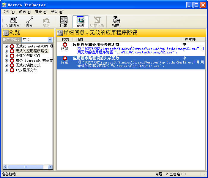 从 Norton SystemWorks 简体中文版光盘中提取出来的,经测试可正常使用。主要用来修复注册表的一些错误和死链接以及无效的快捷方式等,而这些问题是软件特别是一些大型软件在安装、覆盖、卸载过程中产生的,会严重影响系统的运行速度。用 WinDoctor再配合使用其它的注册表、文件夹清理软件,定时进行磁盘碎片整理,系统完全可以在长时间内保持良好的运行状态。