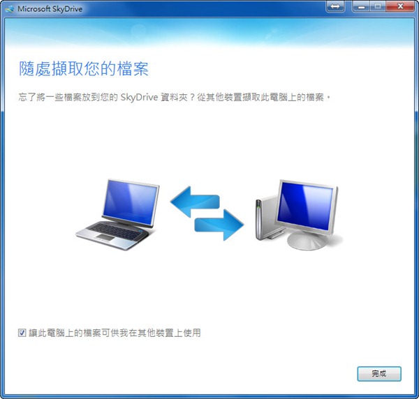 4、如果你忘记将一些内容存放在 SkyDrive 中,可以连回到你的电脑。