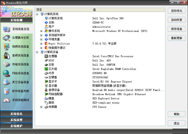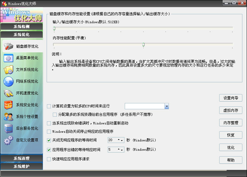 3,绿色版只保留了WINDOWS优化大师主体功能,其他附加功能全部去除,全部程序只有2.7M