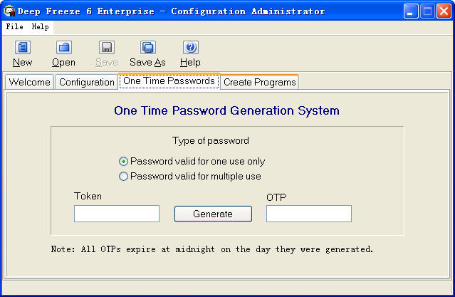CTRL+ALT+SHIFT+F6呼出DeepFreeze的控制面板,这个时候DeepFreeze会提示你要你输入管理员密码,输入密码后,可以看到所示的控制区。