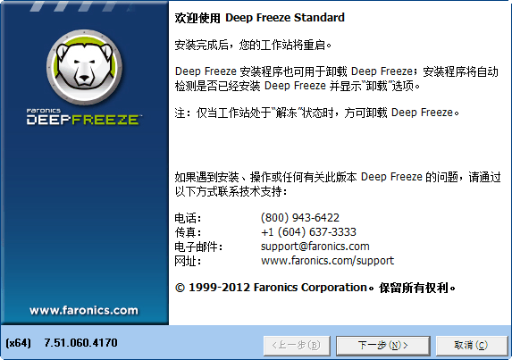 deep freeze 即可用作普通家庭用户对计算机的备份和还原软件,也适用于网吧、机房等使用人群众多,对系统使用和改变的频率很高的工作环境。无论你的系统被更改成什么状态,使用deepfreeze都可以使你的系统、分区、磁盘恢复到你所设定的最佳状态!所以冰点还原精灵(deepfreeze)可以帮助普通用户甚至是网络管理人员节约大量的时间和精力!