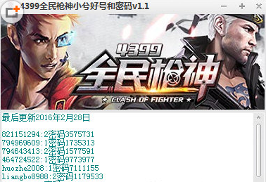 399全民枪神小兮好号和密码获取工具是一款针对全民枪神的账号信息获取工具。通过该工具,自动匹配百度知道相关问题,采集玩家分享的账号,大部分有很多土豪账号,各种高级枪械。如果没有足够的金钱去购买这些装备,还不如用分享的账号去玩玩!