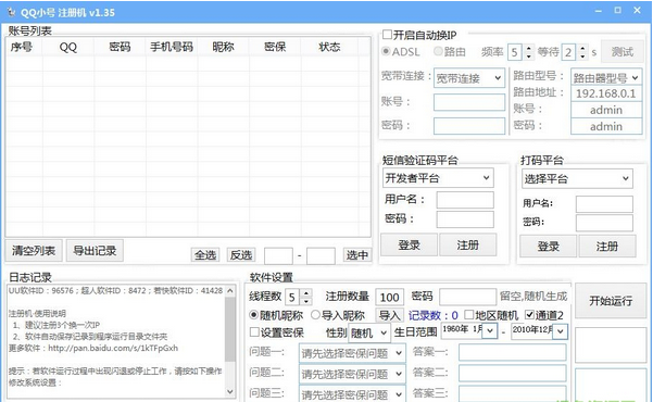 4、若大量出现QQ账号密码错误问题,请联系平台客服,我仅仅用软件接入平台,实现自动发短信注册QQ。