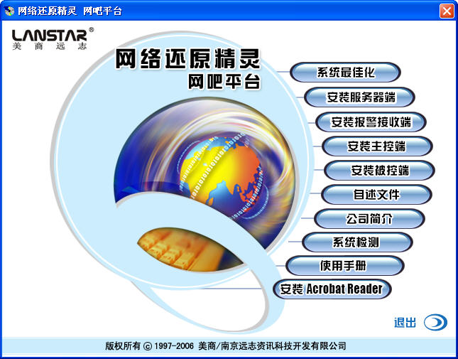 远志网络还原精灵网吧专用平台,除了提供具有超强防破解的2006还原功能外,基于网吧经营的愿景及需要,更增加了5项尖端科技所形成的强大机能。协助网吧业主打造一个全球最尖端的网络娱乐环境,带来更便捷的管理,更丰富的客源及营收。