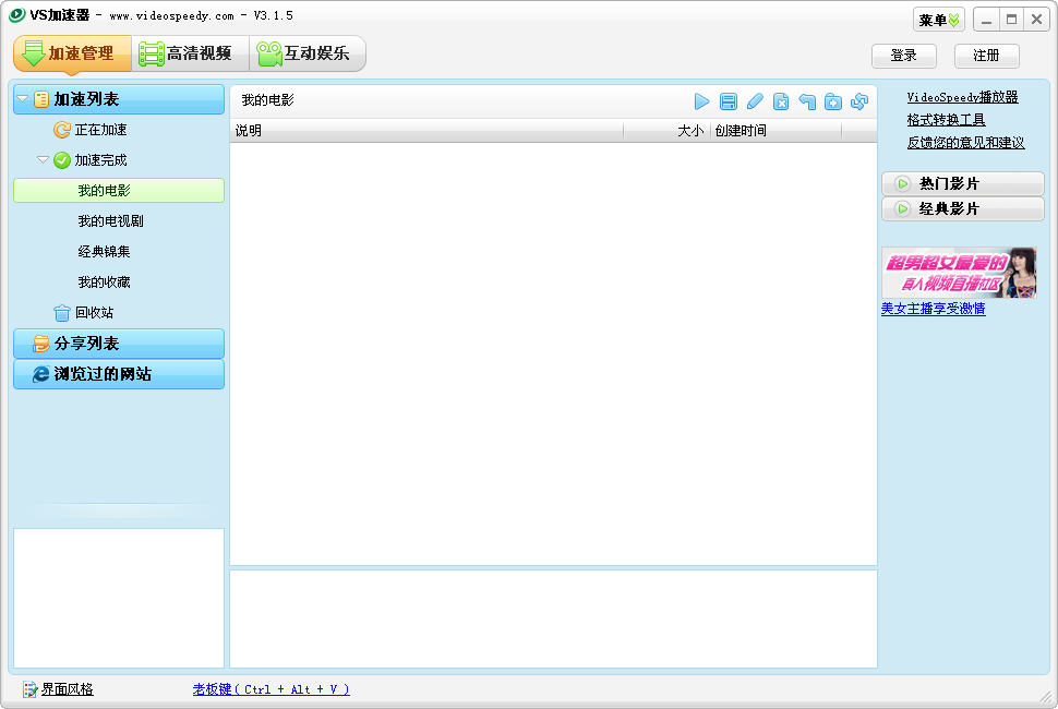 2、不用安装ActiveX控件,只需要安装VideoSpeedy加速器,启动后就可以加速;VideoSpeedy加速器独立于网站,它会自动为观看的视频加速,无需改变用户的任何观看习惯。