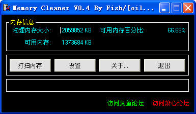 适用操作系统:WindowsXP/2003 说明:普通的内存整理软件在整理内存之后,硬盘都会哗哗哗地响上好一阵,这是由于它们把普通程序从内存中“迁移”到虚拟内存中了。这样做不仅不会提高系统性能,反而会降低系统的速度。Memory Cleaner解决了这个问题!它只是整理其他程序所占用的多余的内存,并不会不分青红皂白地“迁移”其他程序。