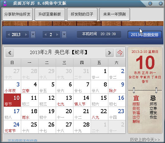 一款日历方面的小工具,,能够显示农历、星期等方面的小工具。软件画面协调,小巧简便,是日历软件中的精品