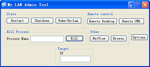 局域网管理工具My LAN Admin Tool,你可以使用它来管理远程计算机 主要特点: ·唤醒(WolCMD) ·远程关机,重新启动 ·远程桌面