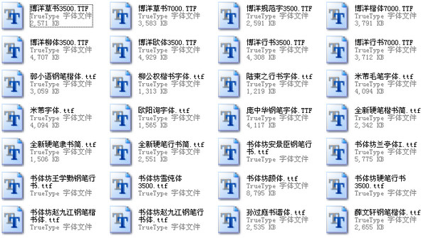 不管你是从事平面设计还是网页美工都少不了这33款书法字体打包哦。直接将要安装的字体复制到C:\WINDOWS\Fonts即可。