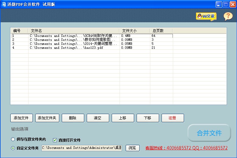 高速准确的合并多个pdf文件;