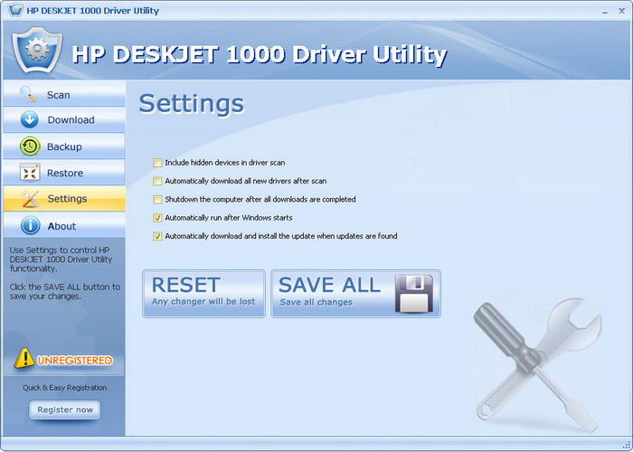 HP DESKJET 1000 Driver Utility 扫描你的电脑丢失过时的驱动和自动下载和更新到最新,最兼容的版本。