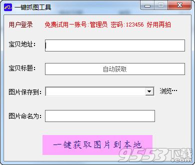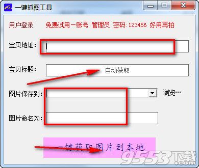 2.将宝贝地址输入软件,点击自动获取,选择图片保存地址以及命名.
