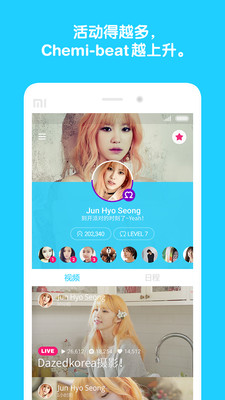 V明星直播电脑版是一款可轻松欣赏韩国人气偶像、演员、美妆的韩流直播视频软件,V明星直播电脑版搜索自己喜欢的明星并进行关注,观看明星相关视频的同时, 可以留言或点赞表达自己的粉丝之心。根据视频点击量,将累计各明星的亲密指数(Chemi-beat),将向亲密指数高的用户提供附加优惠服务!可提前确认V的广播节目日程,但明星们的个人节目会在没有预告的情况下随机播放。到现在还没有体验过的明星直播的魅力吧, 那就请通过V来了解明星们的日常吧!