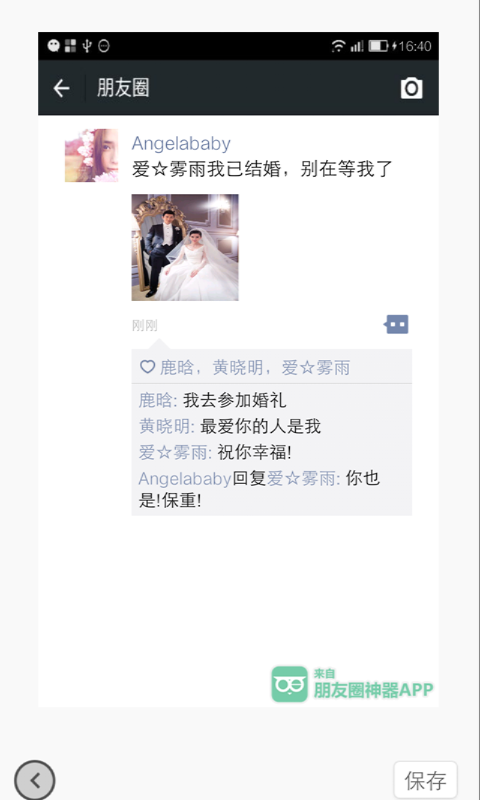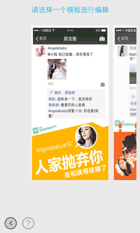 ●恶搞社区轻松查看别人的恶搞内容并轻松收为己用!想让苍井空出现在你的朋友圈吗,想让吴亦凡、周杰伦、angelababy与你贴近距离吗,快快使用朋友圈搞怪神器吧!在朋友圈装逼的梦想我们帮你承包了!