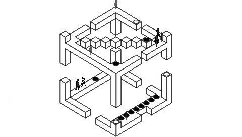 O模式:只操纵一个白色小人。另外有两三个黑色小人不受控制(不吃暂停)。白色小人与黑色小人相撞会“归位”。在这种情况下,操纵白色小人吃掉关卡中的所有影子,即为胜利。