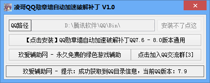 凌哥QQ勋章墙自动加速破解补丁是一款可以破解QQ勋章墙的软件,大家都知道勋章墙需要安装很多软件才可以激活,使用本软件后不需要安装那么多软件,就可以直接激活QQ勋章墙了。