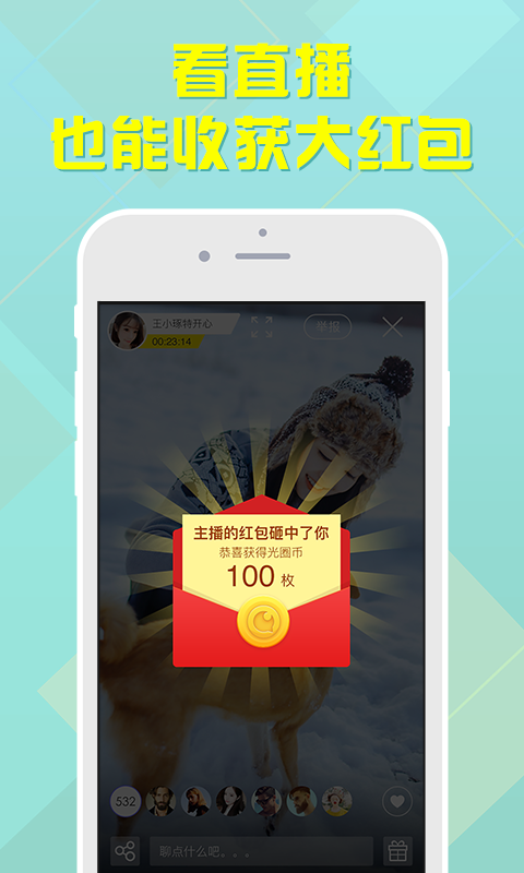 2、赚钱:看直播能收获红包,做主播能收到礼物。开心玩直播,还能赚钱,bingo!如此赚钱的手机直播APP国内仅此一家哦,快快通知小伙伴们,他们会感谢你的。