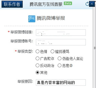 2,填写相关的信息,就能够进行腾讯微博的举报