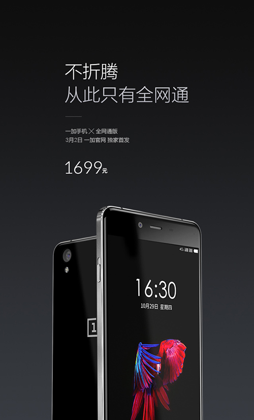 今天,一加官方正式公布了一加X全网通版的上市时间和售价消息,明天(3月2日)上午10点在一加官网独家首发,售价为1699元。另一个好消息,一加手机X 3G RAM双网版,降价100元,售价为1499元。