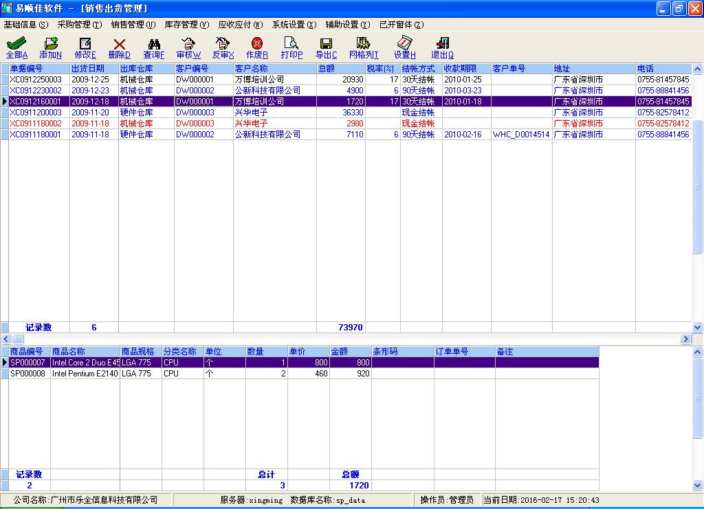 销售管理:提供从销售报价、销售订单、销售出货、销售退货与销售换货的完善业务流程管理。提供丰富的销售报价/销售订单/销售出货/销售退货/销售换货明细表与汇总表,商品销售量/销售额/销售利润排行榜,客户销售额/销售利润排行榜,商品销售明细与汇总表,客户销售明细与汇总表,年份销售额/销售利润表,商品年份销售量/销售额/销售利润表,客户年份销售额/销售利润表,部门/主任/开发员/跟单员/业务员业绩明细表与汇总表,帮助企业实现销售物流、资金流和信息流的有效管理。