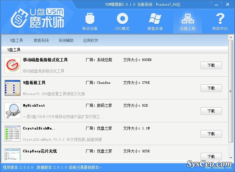U盘魔术师,简称USM,由系统总裁网站(www.sysceo.com)开发研制,是一款面对移动设备,光盘设备,本机系统的PE系统的制作工具,界面友好、简单易用、功能全面、自定义强,是装机人员必备工具。