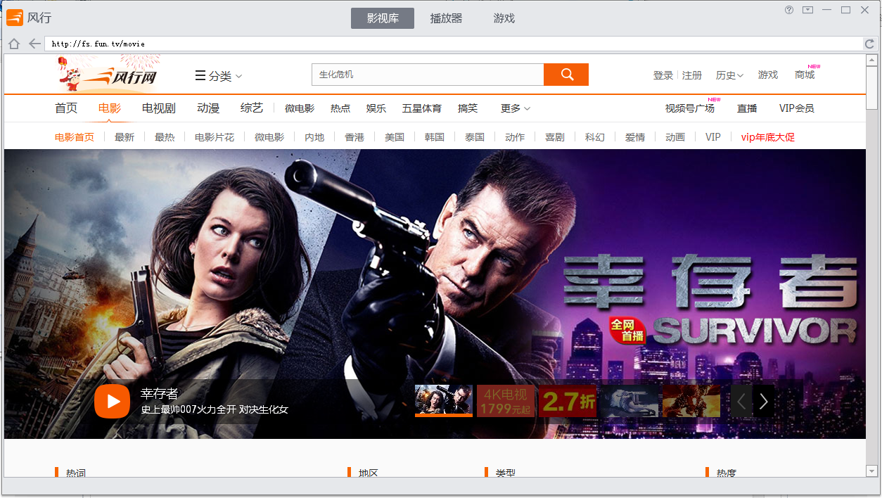 风行的影视节目已达到DVD画质,比在线视频网站的清晰度提升3倍,体验家庭影院级的视听享受。