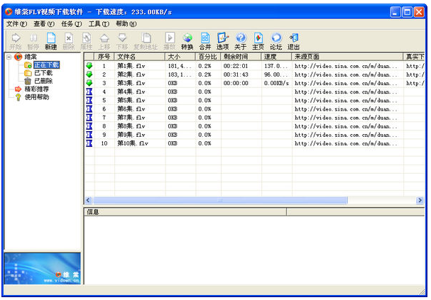 维棠FLV视频下载软件由维棠开发小组共同开发,完全免费使用,无须注册,无须安装,直接下载即可使用的视频下载软件。是一款真正的绿色的FLV视频节目下载软件。利用维棠FLV视频下载软件可以将各播客网站上的FLV视频节目的真实地址分析出来,并下载到本地,再利用维棠FLV播放器流畅的观看,而不用担心网速慢造成的 观看不畅的问题。用户同时也可以将特别喜欢的FLV视频节目下载下来收藏。