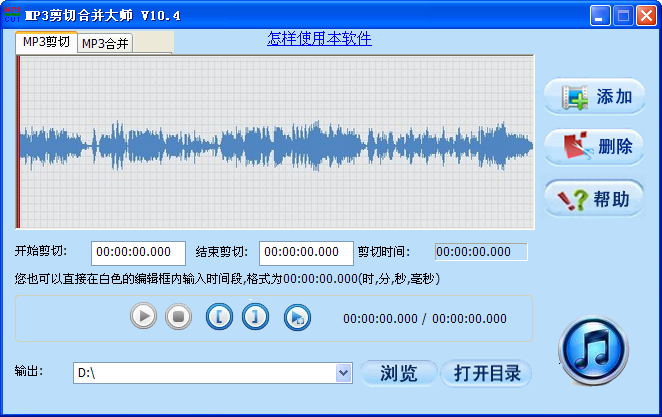 提示:如何删除一首歌的中间部分,可以先剪切出头和尾,再把这两者合并起来就行了,这是其他mp3剪切软件做不到的