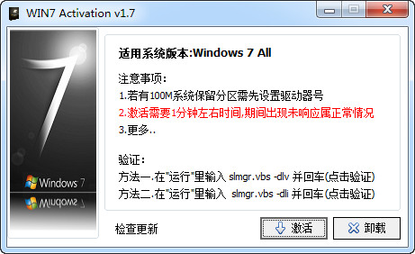 运行WIN7Activation后,点击软件主界面上的“激活”,进入激活状态!