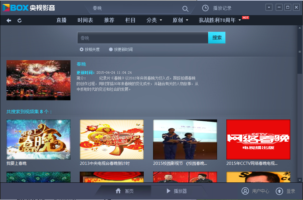 2016春晚CCTV播放器PC版是一个可以观看所有省份的春节联欢晚会的一个播放器,并且可以观看2016年以前的春节联会晚会。