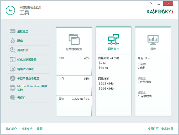 卡巴斯基安全软件2015是卡巴斯基实验室最新发布的一款系统安全防护软件,卡巴斯基安全软件2015除了大家所熟知的反病毒、反广告等大众功能,本次还添加上网管理功能、安全键盘功能等全新功能