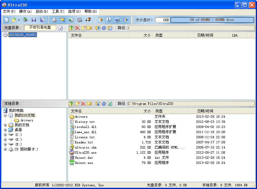 采用双窗口统一用户界面,自动优化ISO文件存储结构,节省空间。支持shell文件类型关联,支持ISO 9660 Level1/2/3和Joliet扩展,支持shell文件类型关联;可在Windows资源管理器中通过双击或鼠标右键菜单打开ISO文件。只需使用快捷按钮和鼠标拖放便可以轻松搞定光盘映像文件。
